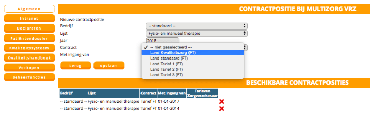 | Contracttype | Tarieven bekend gemaakt door zorgverzekeraars | Contract beschikbaar in HCI SpotOnMedics |