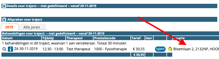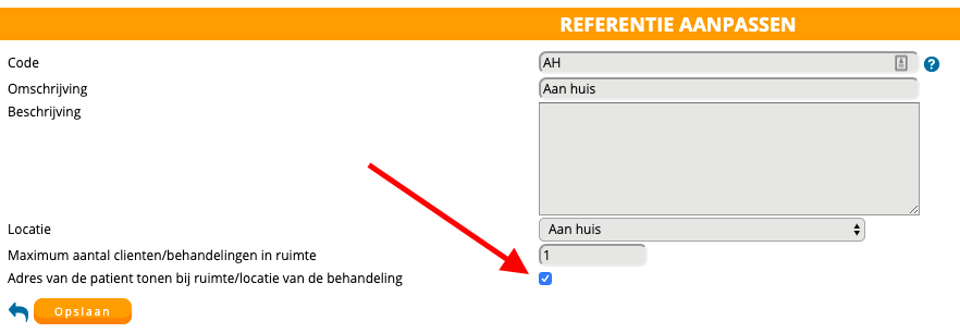 Zet een vinkje achter ‘adres van de patient tonen bij ruimte/locatie van de behandeling.