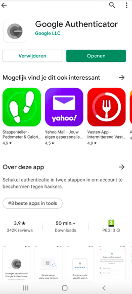 Stap 3: druk op ‘openen’ om Google Authenticator app te openen