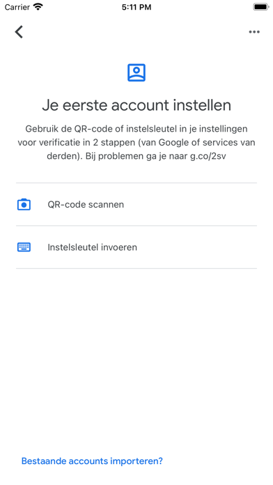 Stap 5: u heeft nu de mogelijkheid om uw account aan te maken, door de QR code van het scherm te scannen of om handmatig de instelsleutel in te voeren.