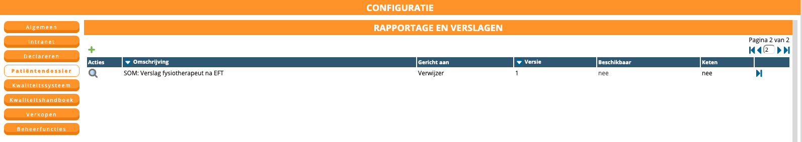 In deze rapportages is het BIG nummer al standaard opgenomen. Indien u reeds gebruikt maakt van bestaande rapportage dan is het mogelijk om het BIG nummer in de bestaande rapportage toe te voegen. Dit kunt u doen via configuratie – patiëntdossier – rapportages.