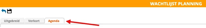 Kunt u de patient direct plannen in de agenda, dan klikt u bovenaan de pagina op het tabje ‘agenda’.