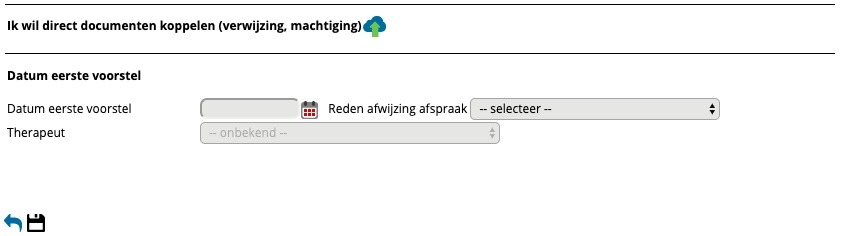 - Datum eerste voorstel: wanneer u de patient niet direct kunt inplannen, heeft u wel de mogelijkheid om een datum eerste voorstel in te vullen.