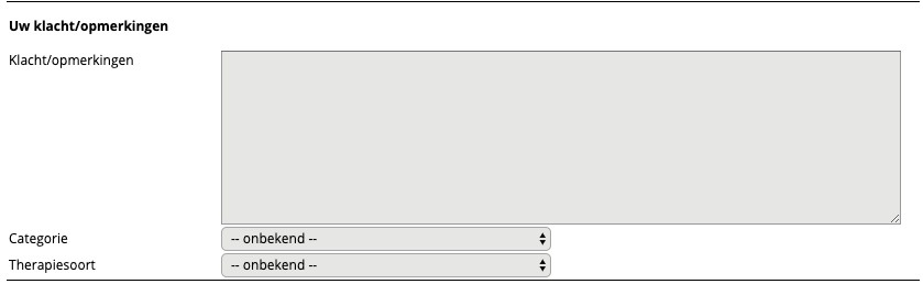 - Therapiesoort: indien u de therapiesoort weet, heeft u de mogelijkheid om deze direct in te vullen. Ook kan de therapiesoort nog later door de coördinerende therapeut worden ingevuld.