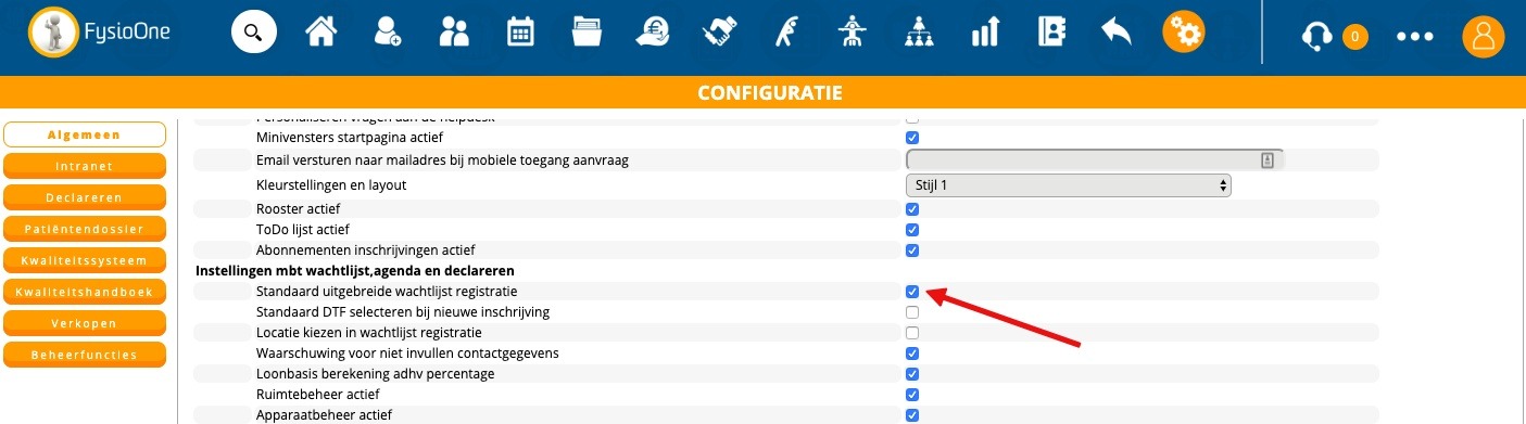U komt nu direct in de ‘uitgebreide wachtlijst’ of in de ‘verkorte wachtlijst’. U kunt zelf uw voorkeur instellen. Dit kan via configuratie – algemeen – omgeving instellingen – vinkje achter ‘standaard uitgebreide wachtlijst registratie’. Wanneer u het vinkje niet zet, wordt standaard de ‘verkorte wachtlijst’ geopend.