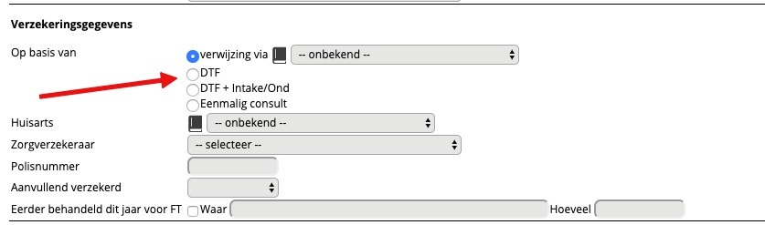 - DTF: indien de patiënt alleen komt voor een screening, dan selecteert u DTF.