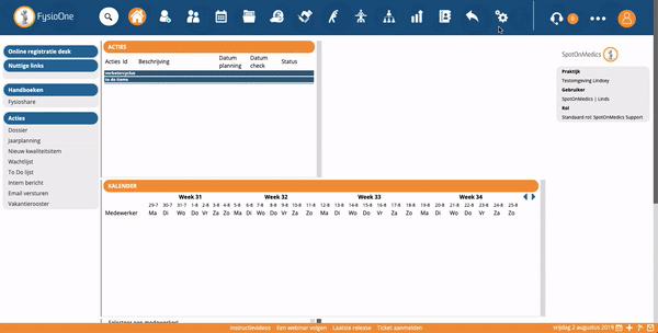 Nadat u de vinkjes heeft gezet bij de configuratie, dient u een bestaande patiënt met dezelfde klacht via de agenda te selecteren. Wanneer het een nieuwe patiënt betreft, of een patiënt met een nieuwe klacht, dan dient u de patiënt via de wachtlijst in te plannen. U druk op het tijdstip in de agenda.