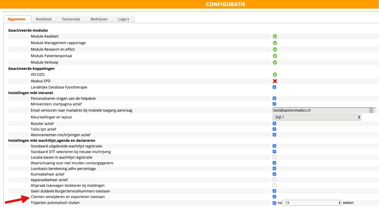 Verwijderen / Exporteren cliënten/patiënten alleen door management