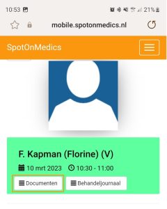 Wilt u een kopie van het identiteitsbewijs of een verwijsbrief toevoegen aan de afspraak? Deze optie is ook beschikbaar in de mobiele agenda. U heeft de mogelijkheid om via uw mobiele camera de documenten direct te uploaden. Open de afspraak en klik op ‘documenten’.