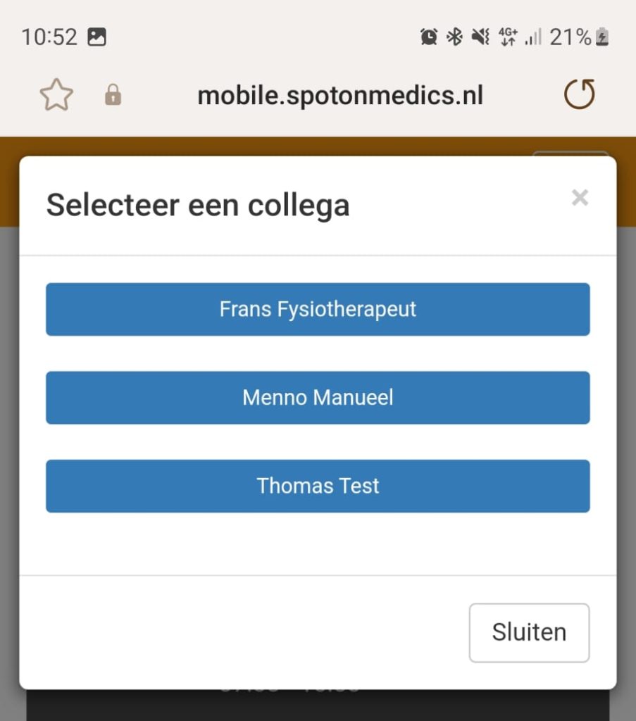 Laten we aan de slag gaan. Ga naar https://mobile.spotonmedics.nl met uw smartphone. Log in met uw gebruikelijke inloggegevens vanuit uw FysioOne omgeving.