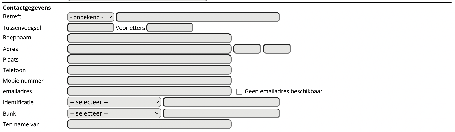 Vul de contactgegevens aan. Als er geen e-mail adres beschikbaar is, kunnen er geen bevestigingen via de mail verstuurd worden, kan het patiëntenportaal niet gebruikt worden en kan de intake vragenlijst ook niet online ingevuld worden.