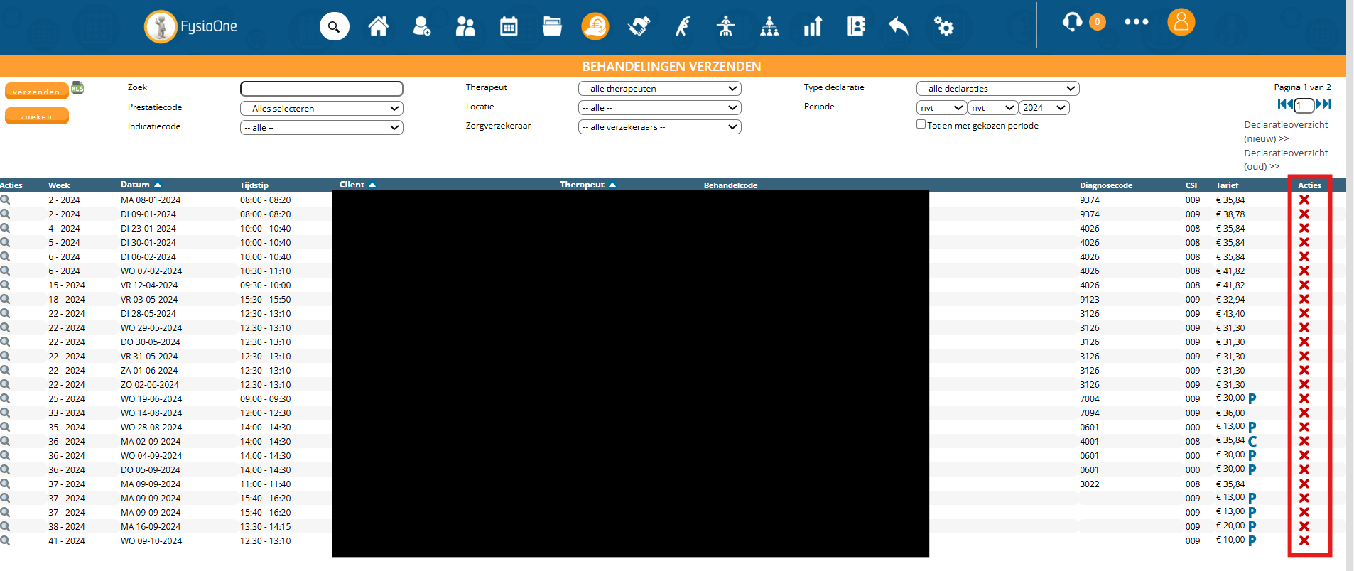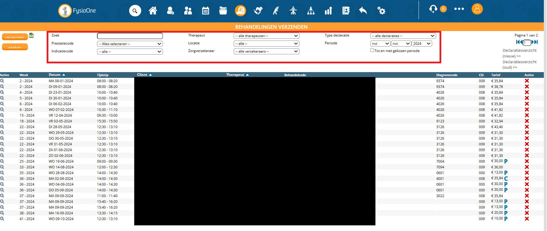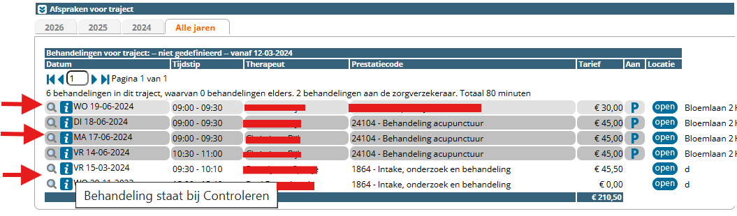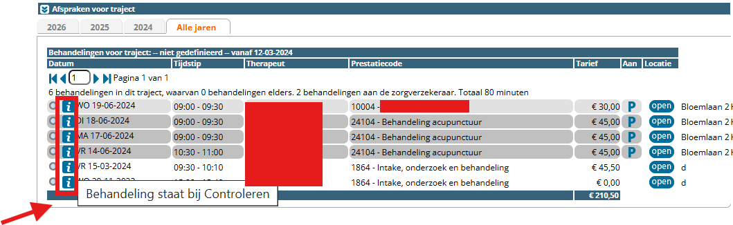 U dient de behandelingen onder declareren – Controleren op de reguliere wijze door te boeken, zodat de behandelingen gedeclareerd kunnen worden.