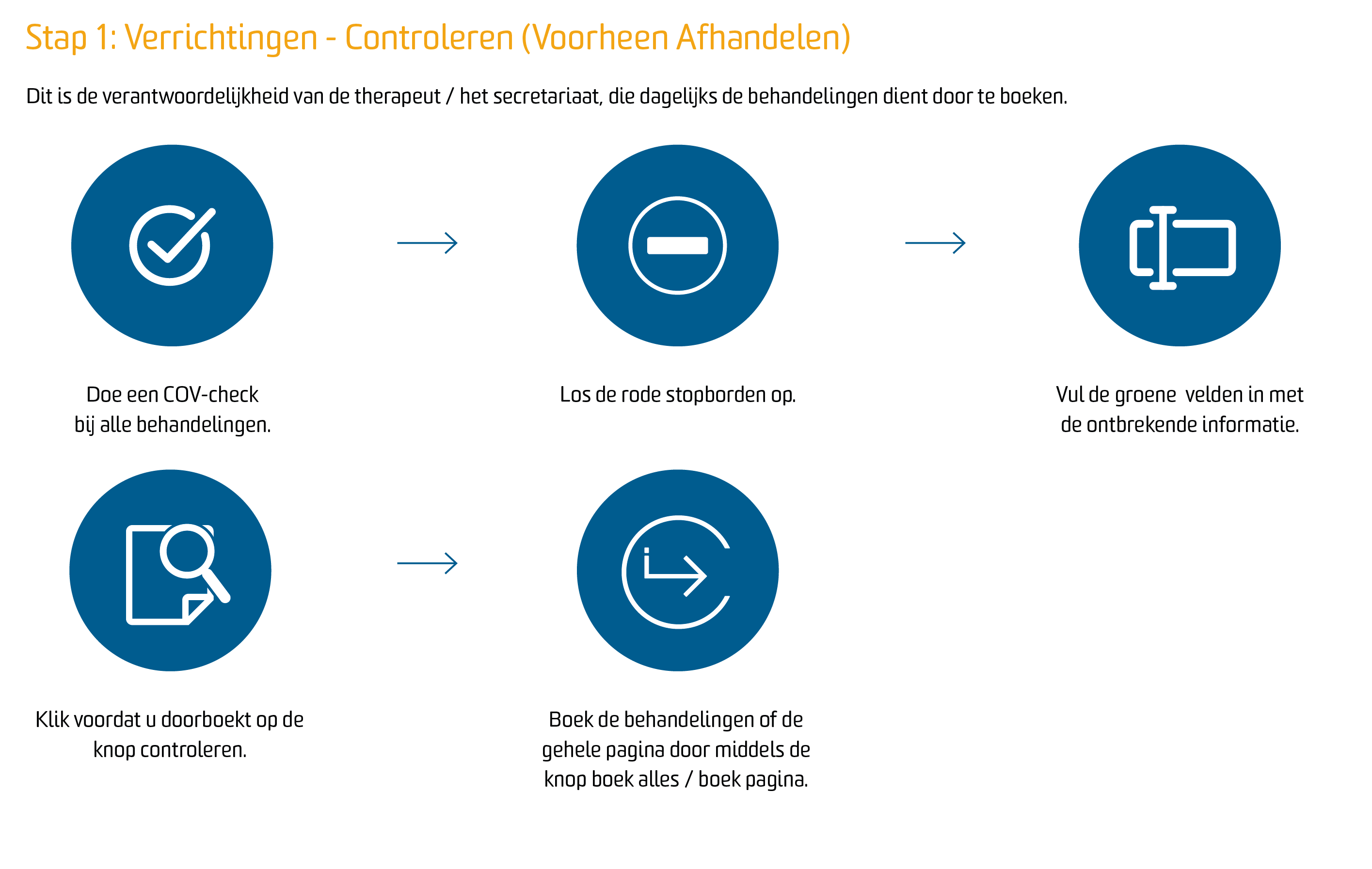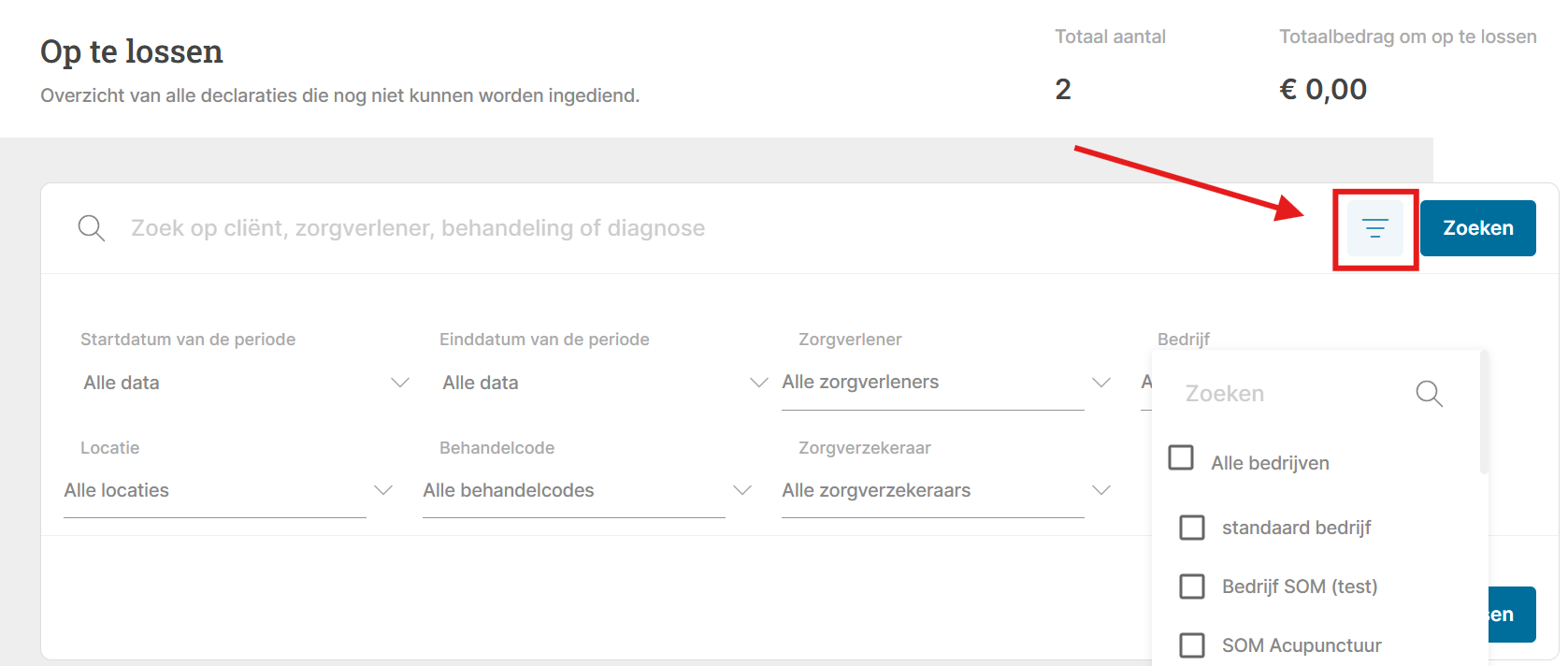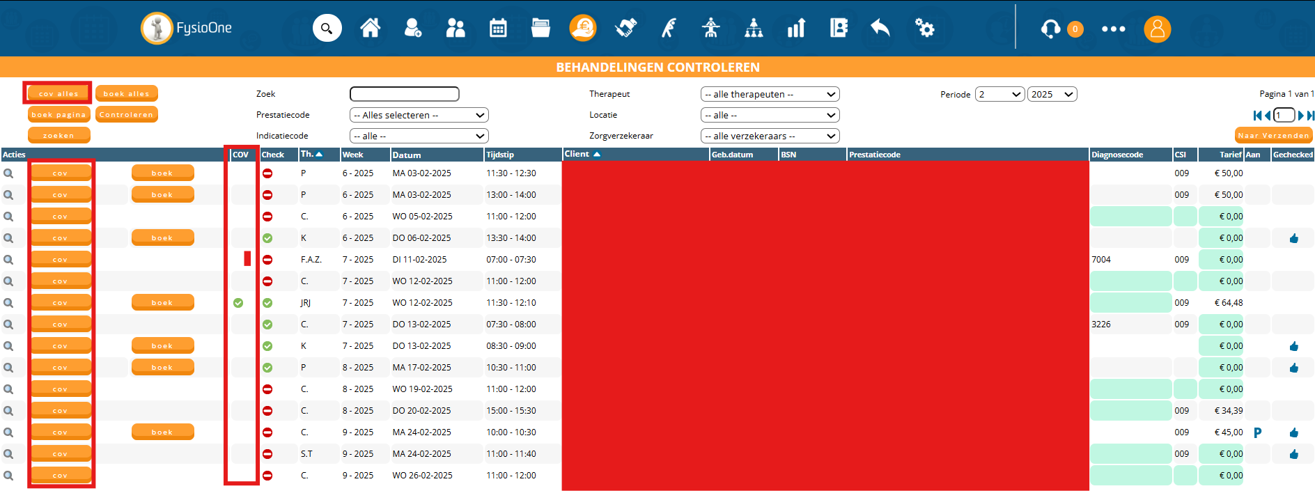 U dient de behandelingen onder declareren – Controleren op de reguliere wijze door te boeken, zodat de behandelingen gedeclareerd kunnen worden.