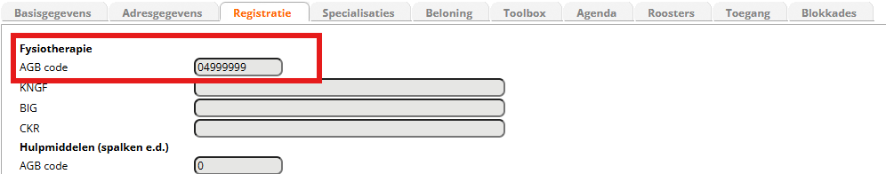 Voordat gedeclareerd gaat worden is het belangrijk dat de AGB codes correct staan ingevuld bij alle therapeuten. Dit kunt u controleren (via Configuratie – Algemeen – Gebruikers – tab Registratie). Mocht u een AGB code willen controleren, dan kan dit via Vektis (AGB register).