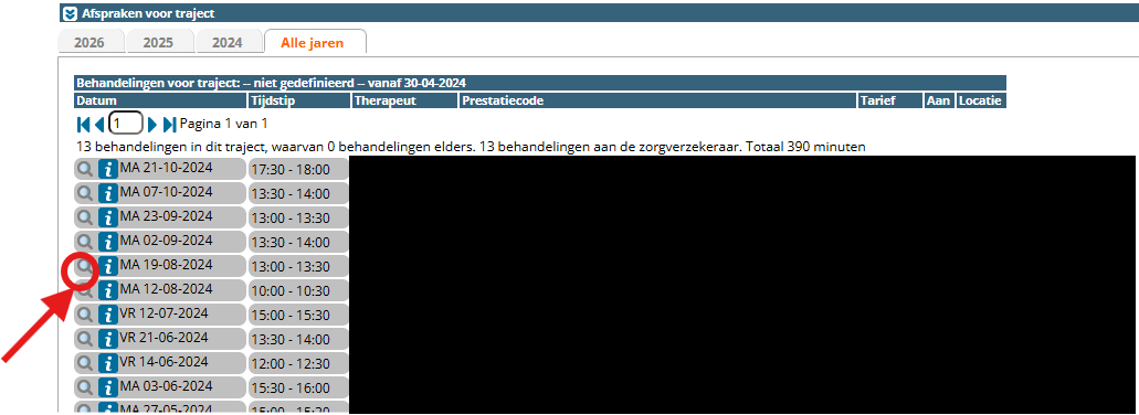 Stap 2: Middels het vergrootglas kunt u het bestand openen en heeft u een overzicht van alle behandelingen die in het bestand zitten.