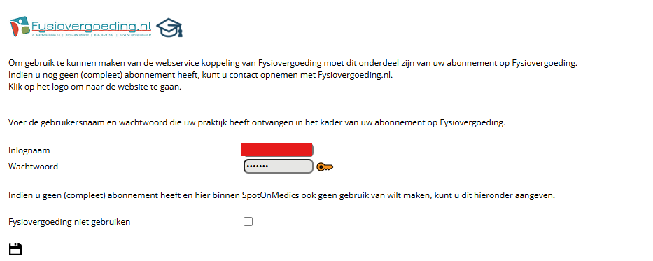 Controleer onderstaande instellingen m.b.t. Fysiovergoeding (via Configuratie – Algemeen –Fysiovergoeding):