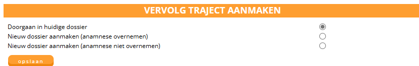 Let op: Er wordt op deze manier niet automatisch een dossier klaargezet en dus ook geen klinimetrie pre-set of dossierstructuur toegepast. De patiënt ontvangt ook niet automatisch de intake vragenlijst. Deze manier van een traject aanmaken is daarom alleen aan te raden bij uitzondering