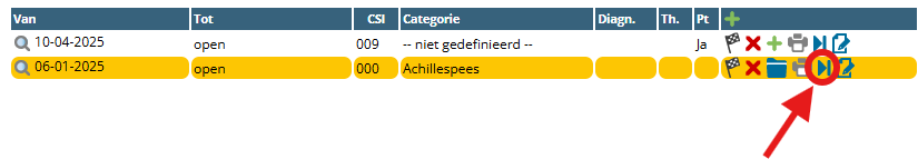 Naast nieuwe trajecten kunt u ook vervolgtrajecten aanmaken. U doet dit met het blauwe pijltje achter het traject.