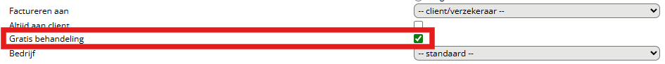 Gratis behandeling: zet dit vinkje aan als het gaat om een start-, tussen- of een recidive behandeling. Let op! Dit vinkje zet u dus niet aan bij de eindcode en recidief eindcode.