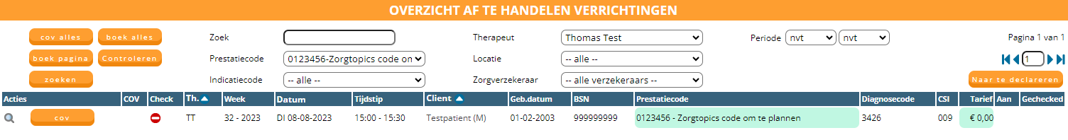 Door het gebruik van de juiste inrichting van de prestatiecodes wordt de declaratie bij de zorgverzekeraar juist afgehandeld.