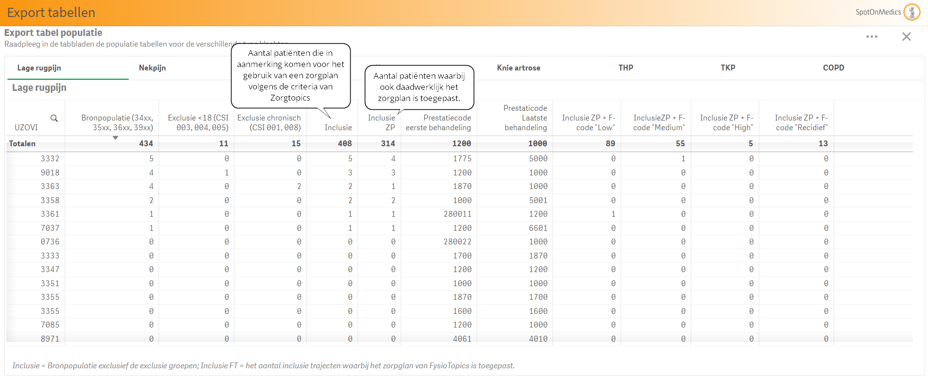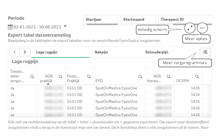 Let op: de inclusiecriteria zijn uitgebreid ten opzichte van de data aanlevering voor FysioTopics en Zorg1 (zie vorig hoofdstuk).