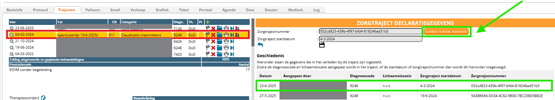 > Genereer voor al deze oude trajecten een nieuw zorgtrajectnummer met de knop “nieuw nummer genereren”