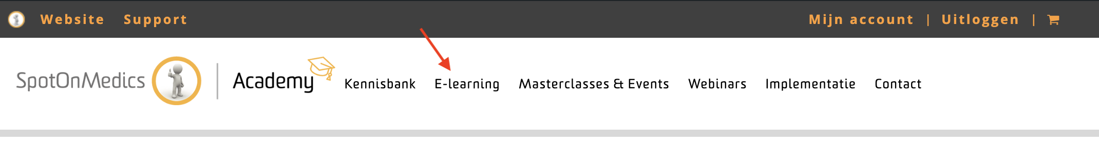 Mocht u direct nog een module willen toevoegen aan uw winkelmand, dan klikt u op ‘E-learning’ in de menubalk. Kies welke module u wilt toevoegen en doorloop bovenstaande stappen nogmaals.